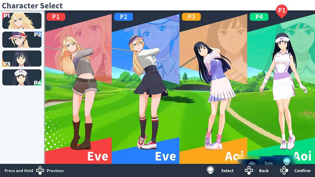 在任天堂Switch™的详细图形娱乐中,与Eve, Aoi和朋友一起体验高尔夫!