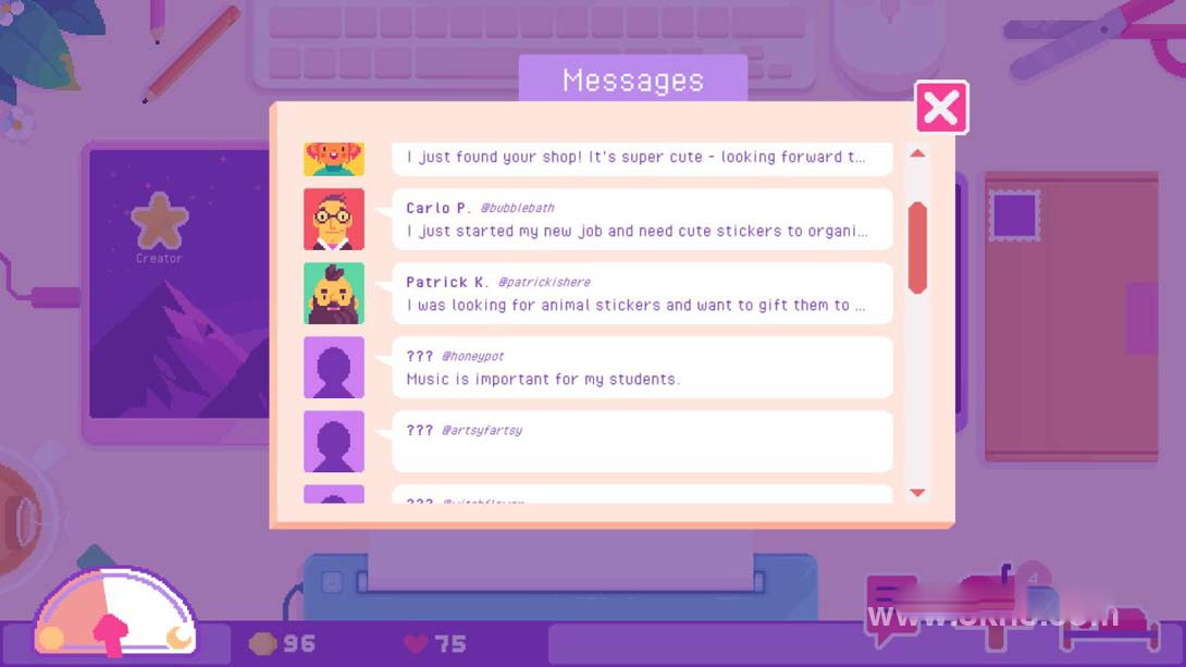 结合几十个元素来创建你自己的收藏,并把它们卖给志同道合的人。不同的贴纸吸引不同的顾客!你可以添加一些闪光或全息效果,使他们更特别!