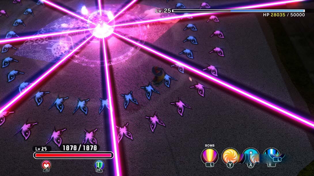 敌人可能会释放出大量的投射物,但你可以用法术卡造成沉重的伤害,用净化棒进行强大的打击,用适时的守卫减缓攻击。