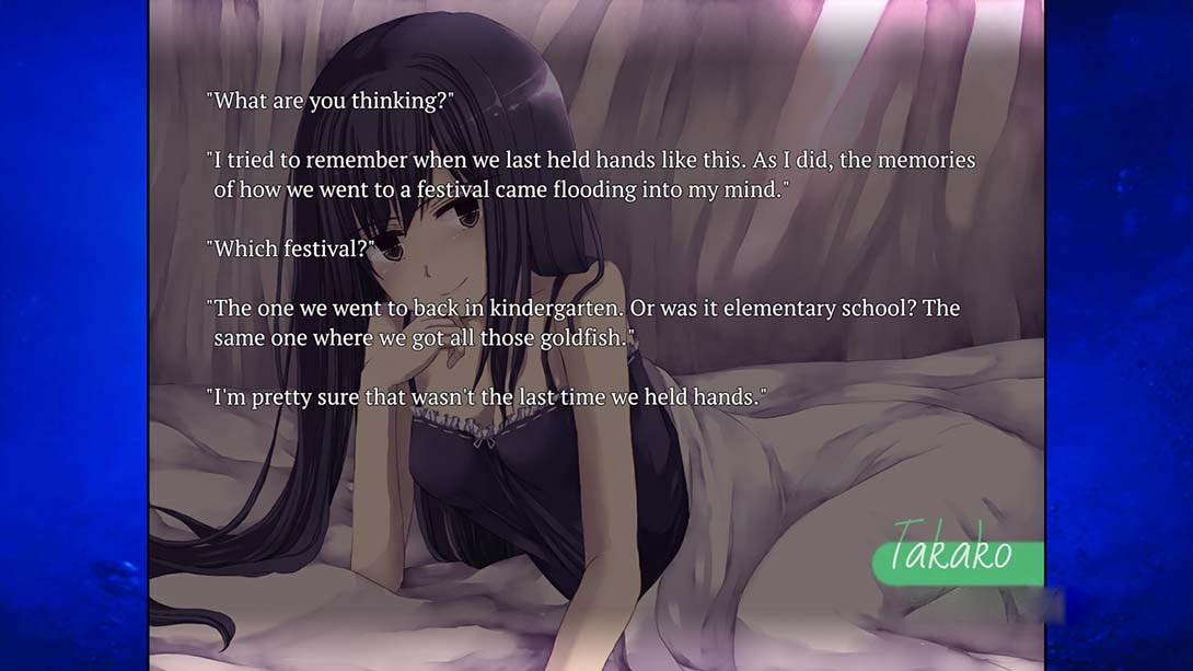 《海底》是一部广受好评的以百合为主题的悬疑视觉小说,通过三个不同角色的视角讲述故事:被旧情人的幻觉困扰的设计师美津野七子;志子的朋友、研究人类记忆运作的精神病学家崎木(Narasaki Hibiki);高子,七子的前情人,她很快就忘记了她的过去,包括两个女人是如何以及为什么分开的,尽管他们从小就在一起。