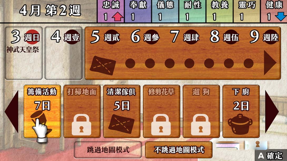 設定一週的工作、休假,並自由探索宮之杜家宅邸及庭院、銀座等地圖!