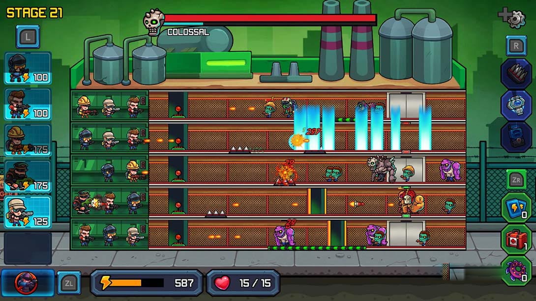 《僵尸大毁灭》是一款塔防游戏,发生在带有可互换电梯的建筑物内。
