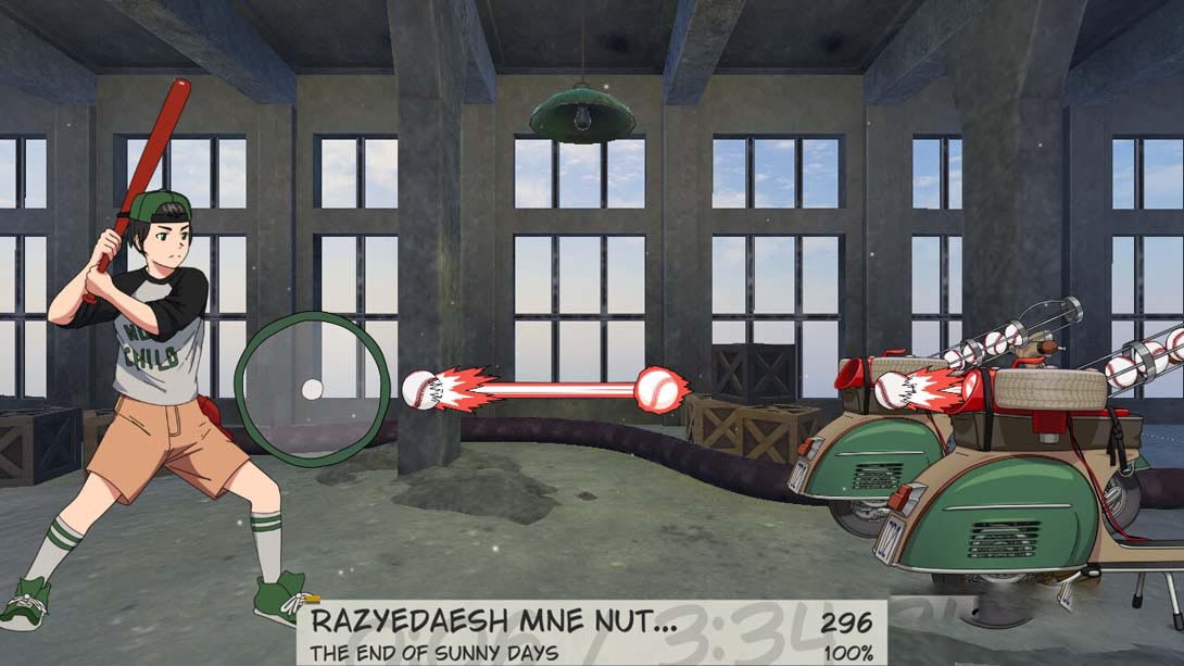在充满后朋克气息的街道中,游乐场、仓库、小巷、立交桥等城市的各个地方都设有打席。在设置在助动车货架上的棒球发射台,根据音乐节奏投出的球,根据颜色和动作适时击球。在单击、快速组合、保持等基础上,还必须更换具有景深效果的两条线。磨练技术,以完美的击球为目标!而且,故事情节和你的动作是联动的。你的故事会如何展开,就看你的本事了!