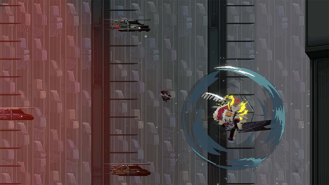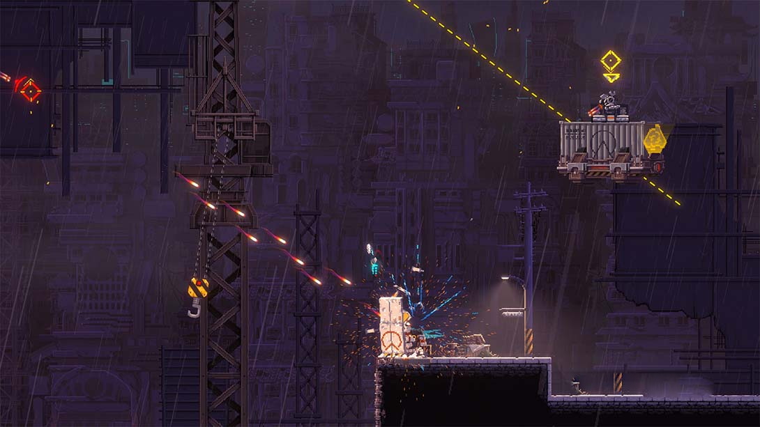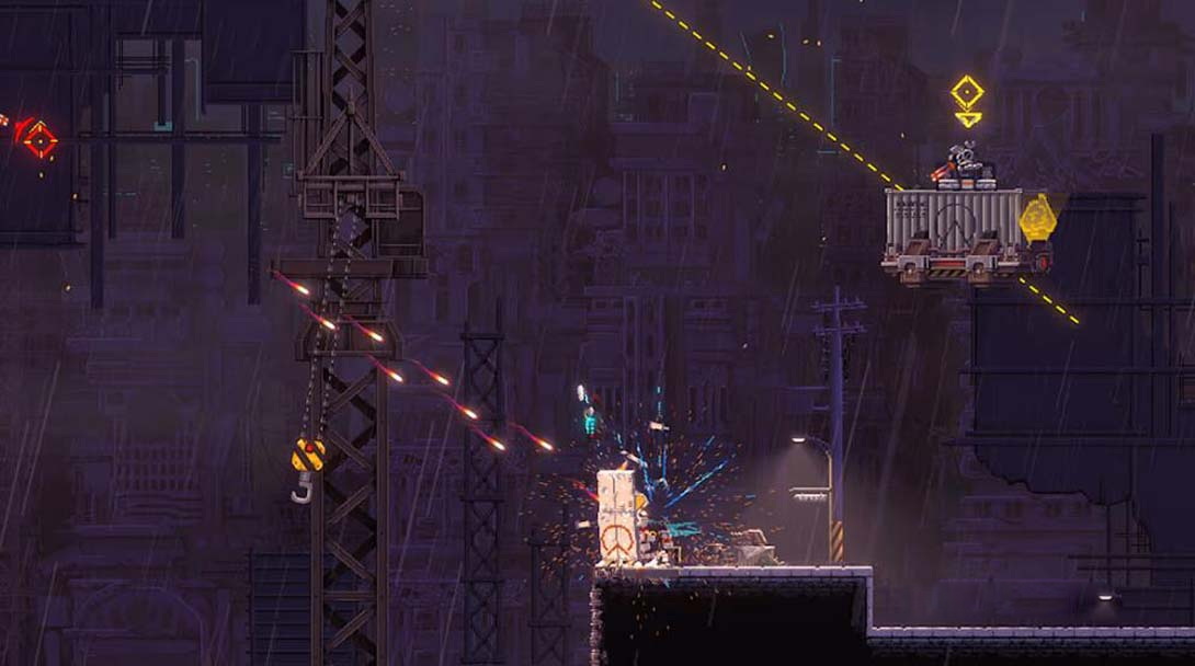 一位退役勇士利用自己的鐵臂攀登著世代巨富的私有城市。目的是揭發城市的秘密,並找到「山娜菲」而報仇。以賽博朋克風反烏托邦為背景的精彩2D「鐵鏈動作」遊戲,《閃避刺客》由此開始。