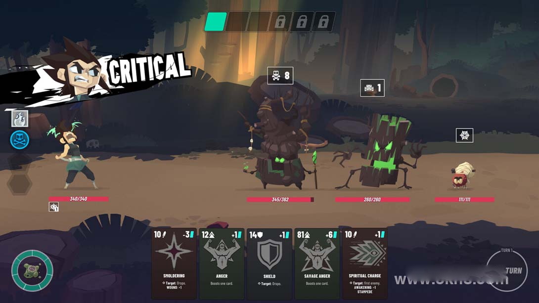 粉碎怪物、打开箱子、花费卡玛购买小贩的商品……在游戏中有许多方法可以使用大约100张卡牌来扩展你的牌组。