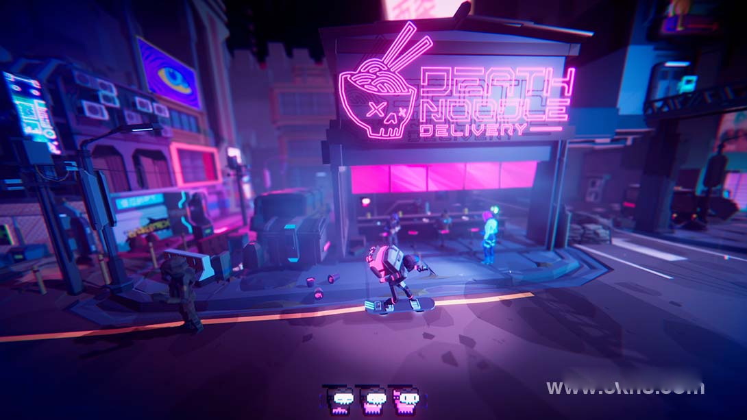 骑着你的悬浮滑板,给你的老板送面条,但要小心:在这个濒临崩溃的赛博朋克城市里潜伏着很多危险,从人工智能无人机到糟糕的司机,我建议你把眼睛盯在路上。