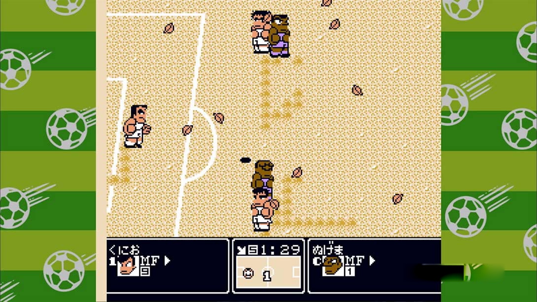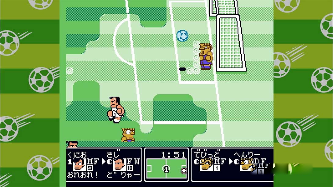 这可能是人气最高的一作热血系列游戏了:超多的队伍,多样的挑战模式,复杂的环境设定以及多样精彩的进球,足以让每一位玩家为之疯狂。在FC后期能玩到如此素质的游戏,实在难能可贵。