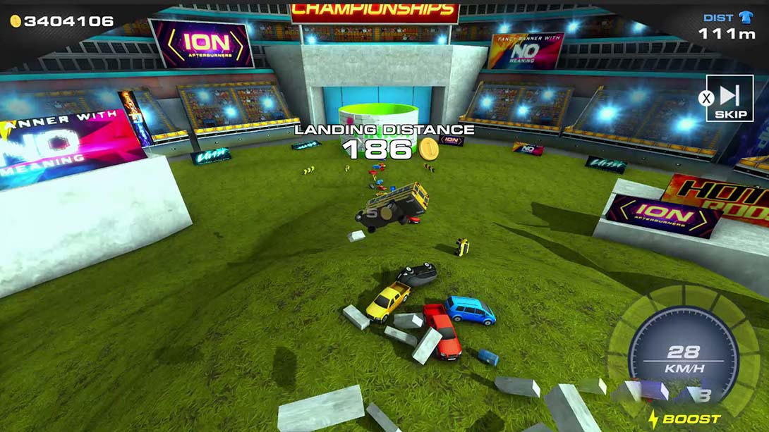 switch《Ramp Car Jumping》是一款刺激的赛车跳跃游戏,游戏的画面效果非常真实,玩家需要控制赛车从坡道飞跃,并通过旋转翻滚飞的更远一些,顺利的到达地面即可获得胜利,喜欢的玩家可以尝试挑战。