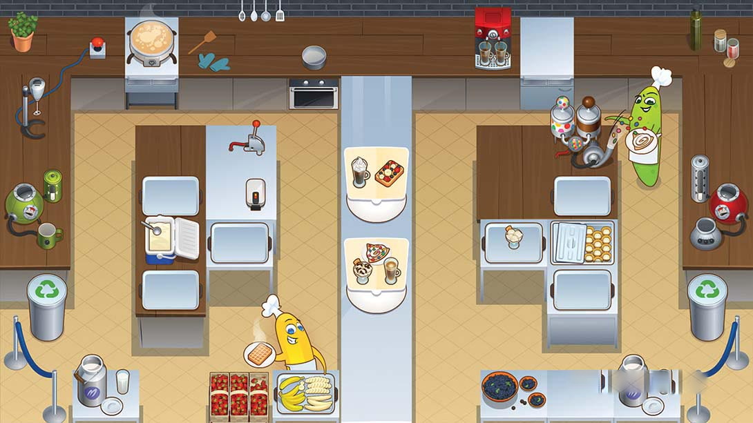 您和您的合作伙伴——有抱负的厨师——发现自己在一个相当不切实际的商业厨房中。它被一个长期服务柜台划分,但您两个都需要的产品和电器被放置在房间的对面。你的工作是合作,一起做饭,并供应蒸,美味的食物订单。切碎,炒和炒一切,你可以扔(在)你的伴侣所需的所有成分。证明做饭是小菜一碟,只要你们一起做!