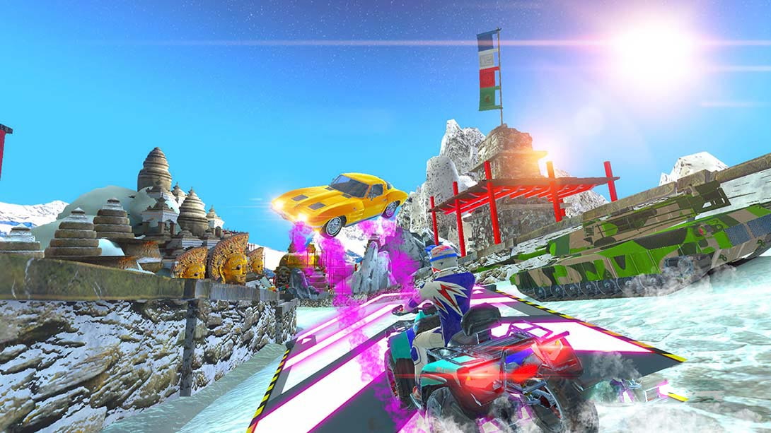 最多可以有四名玩家一起比赛,所以选择您最喜欢的车辆并上路!
