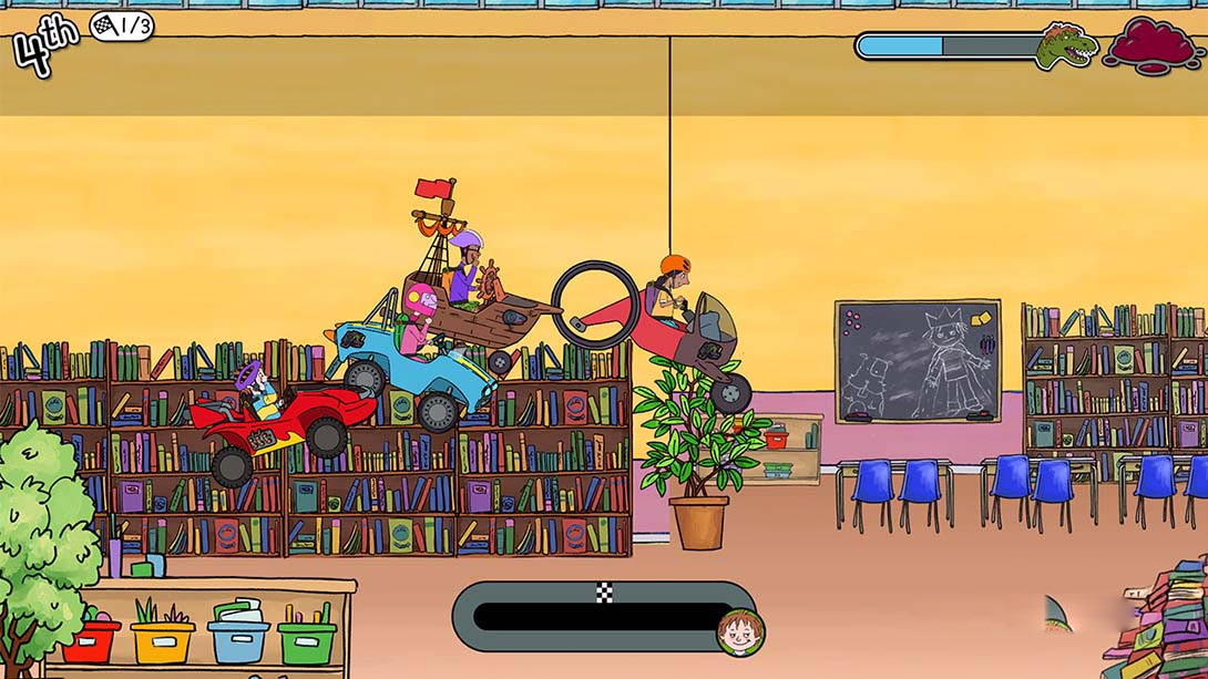 在车间定制您的卡丁车以获得额外优势。赢得完美的加电代币,让其他人站起来!控制您的卡丁车,俯冲过令人敬畏的跳跃并躲避障碍物、黏液和大量的臭鼻涕!