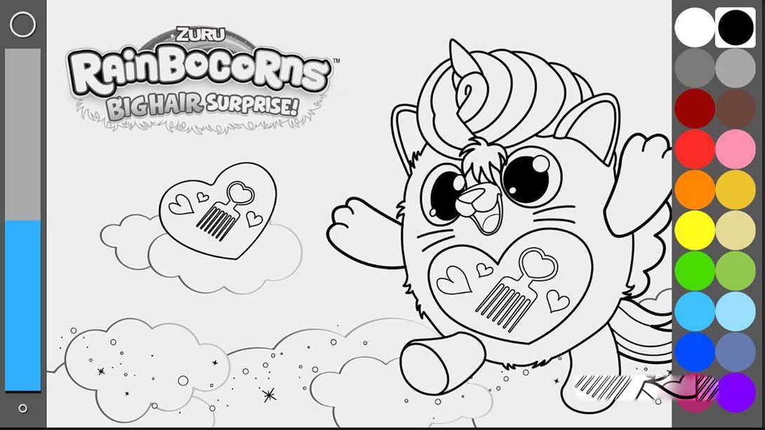 Rainbocorns随附50个可重复使用的数字填色页,您可以使用手指或手写笔进行填色。您还可以放大,缩小和移动图像,以获得完美的彩色图片,并且可以使用左侧Joy-Con™上的捕获按钮保存和共享图片。