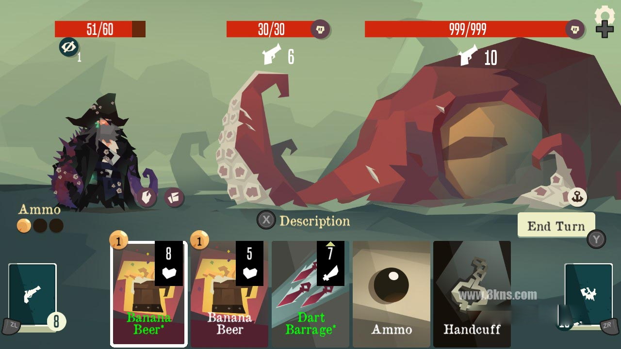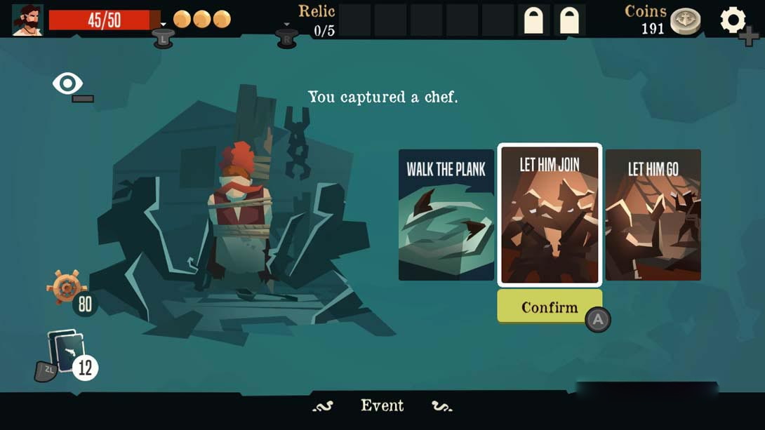 在导航模式中开始一场roguelike探险!在不同的视野中选择不同的路线,与站在你道路上的每一个海盗和歹徒战斗。在你的牌组中添加新卡或升级它们并获得遗物以在旅途中幸存下来!当你玩你会赢得声誉解锁新的地图,卡牌和更多!当你达到9.999声誉,你将解锁与更强大的敌人和独特的挑战的困难模式。