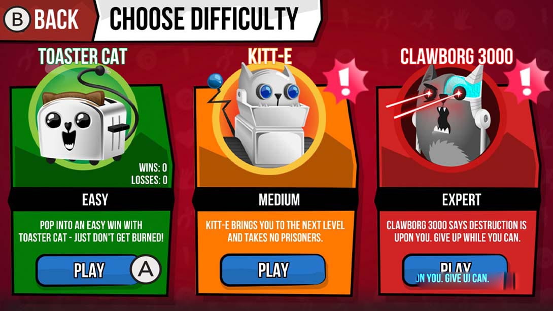 与朋友在同一个房间或在线游戏,或在线游戏中与陌生人一起玩。不喜欢别人?单人游戏对抗小猫机器人对手!