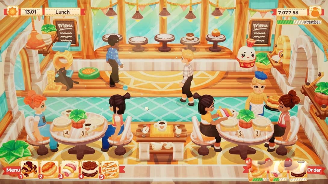 混合材料一起准备各种食谱,包括烘焙糕点,糖果和冷冻甜点!一定要快速为顾客提供服务,保持橱窗陈列充足,这样你就不会错过任何订单!为不耐烦的顾客提供咖啡,让他们在面包店停留更长时间,建立一个可爱的猫咪咖啡馆,让每个人的一天都更美好!