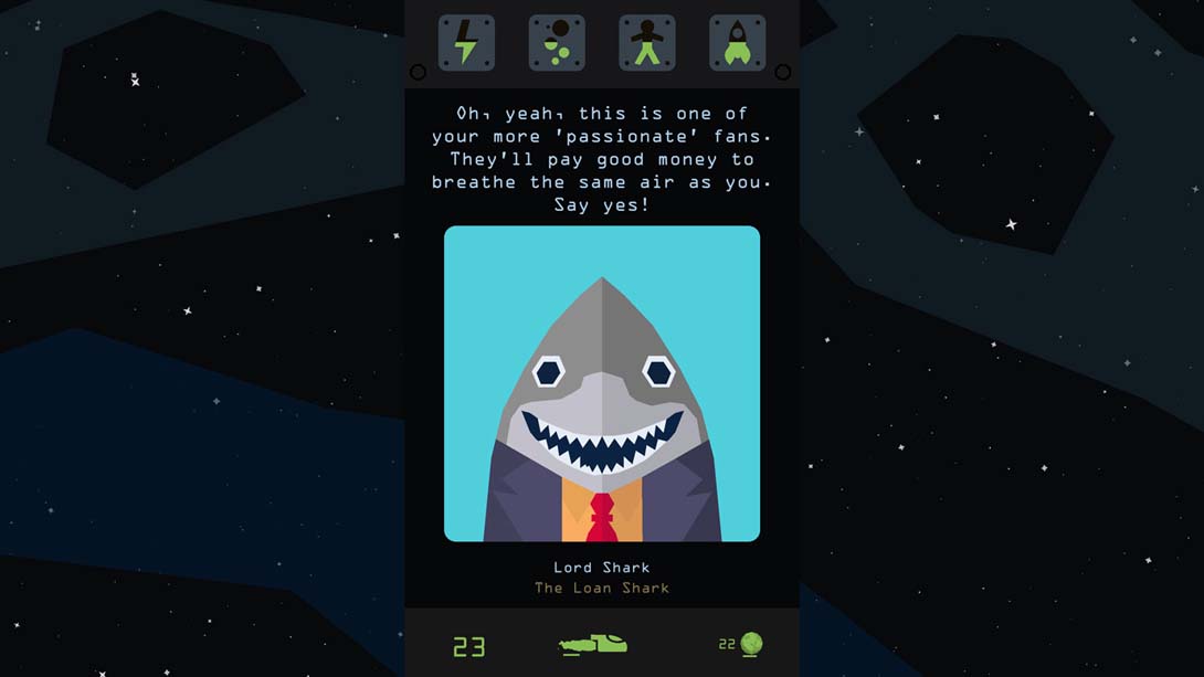 •遇到60多个好奇的角色,包括你的经理,鲨鱼勋爵,学术软体动物斯特伦博,太空熊格隆,……当然还有你的船员和船上的无所不知的人工智能