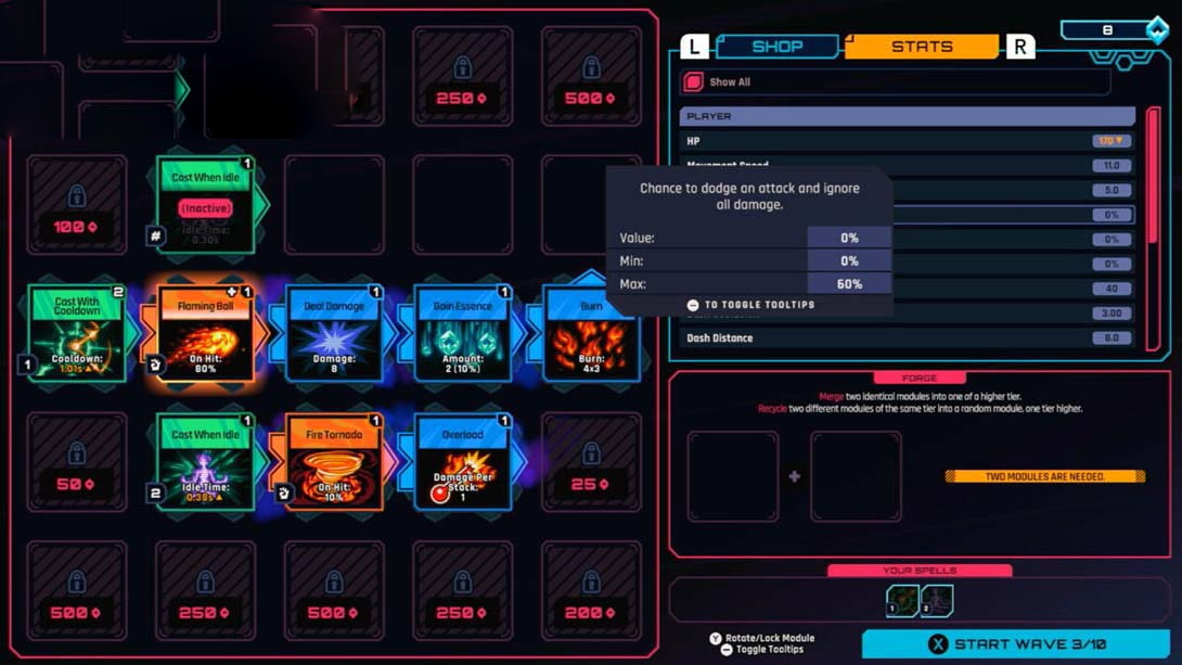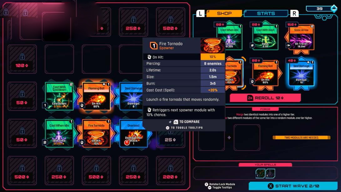 更喜欢快速连续发射声波弹幕箭?或者你宁愿制造一个速度更慢、威力更大的火球,然后扩散成闪电?有超过100种不同的魔法元素可以组合,连击和选择几乎是无限的。