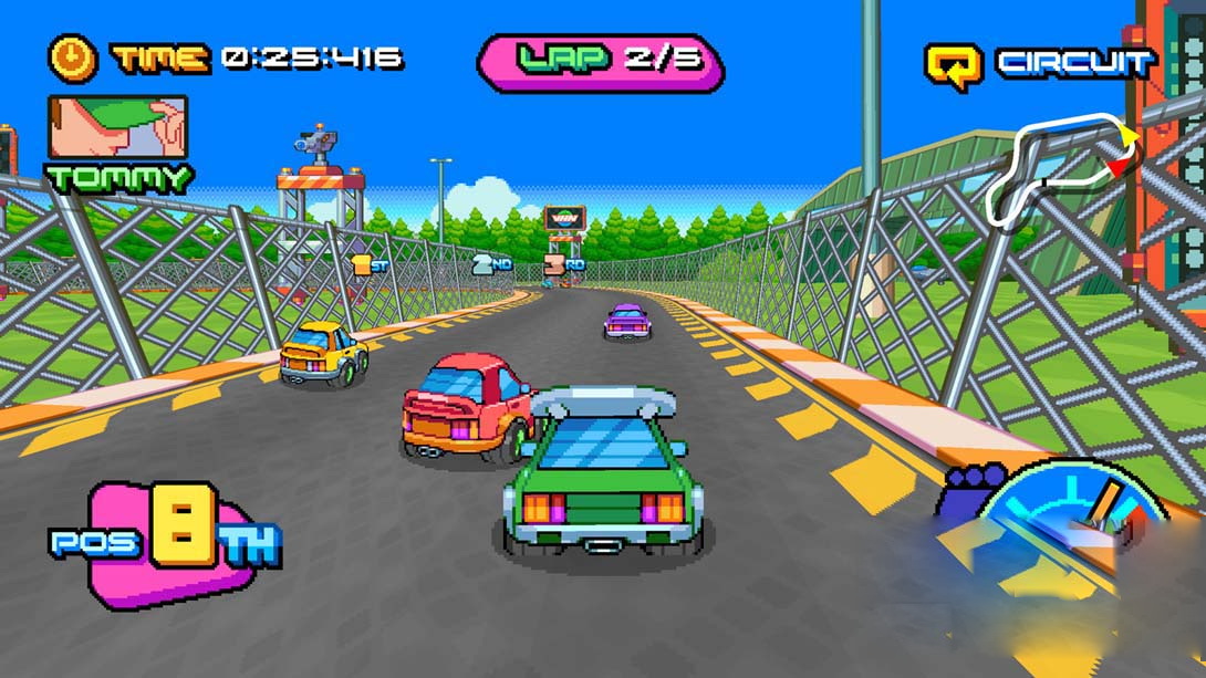 以惊人的速度通过动态和充满活力的2.5D世界,以像素完美的视觉效果带来生命。曲轴与配乐的音量具有砰砰的节拍,灼热的吉他独奏和高辛烷值的能量,真正带来的热量胜利热拉力赛。