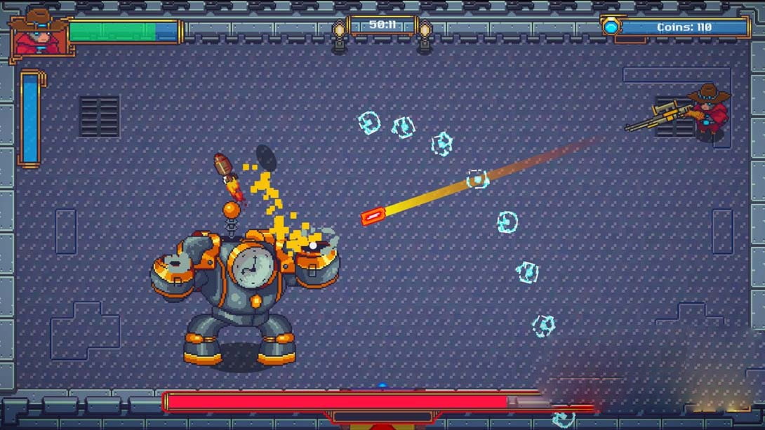 随着控制论技术的发展,狂野的西部变得更加狂野,这取决于你去打倒强盗团伙,让这种技术对抗诚实和勤奋的当地人!踏入角色的蒸汽朋克枪手与机械臂和负载的增强武器在您的处置。《赛博牛仔传奇》是一款自上而下的双摇杆射击游戏,采用光滑的像素艺术风格。