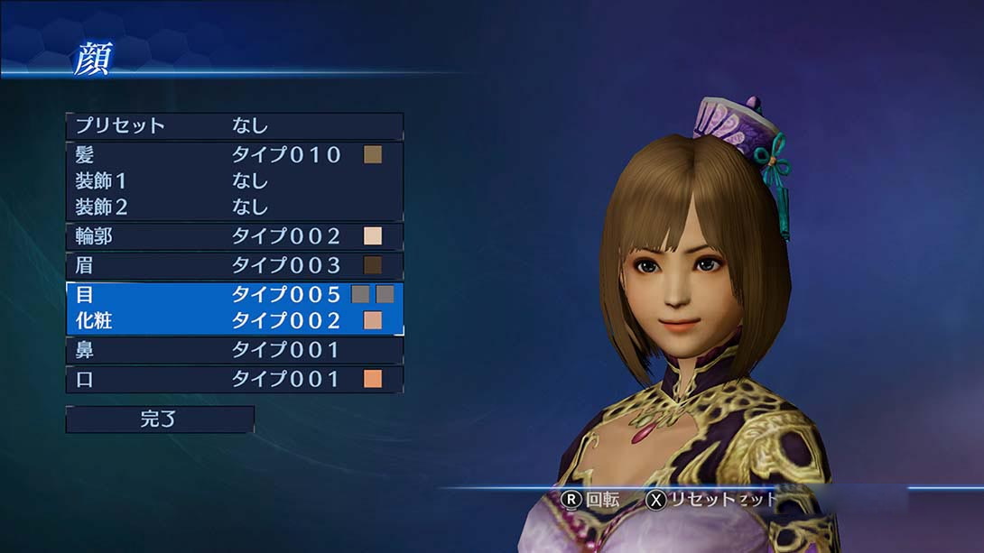 《真三国无双》系列熟悉的编辑系统更为进化,追加能个别编辑轮廓、皱纹、胡须等要素的功能,以及新防具配件与配色变化等,大幅强化武将编辑功能。此外,还追加能按照结为连理的武将外表来自动产生子女相貌的功能。不仅如此,军队的军马、军旗、军团等都能加以编辑,打造自己的三国世界。