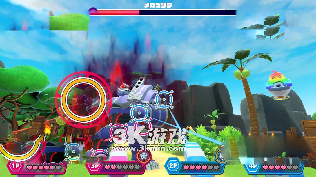 另外,射击打倒在舞台上登场的敌人和设置物的话得到的硬币的获得数得分的明快的规则,即使是小孩子也能放心地游玩!