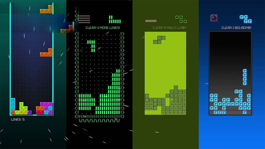 该系列历史上超过15款可玩的经典游戏,包括许多首次在日本以外发行的游戏。在多人游戏中与好友战斗,在Super Bombliss中创造巨大的爆炸来清除线条,并在1984年在Electronika 60电脑上精确地重现俄罗斯方块的第一个版本。