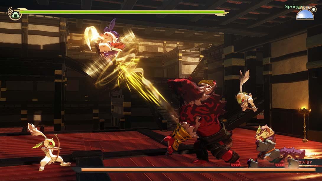 本作是一款动作RPG游戏,舞台为被鬼族所统治的“日之惠岛”。玩家将操作佐久名公主使用“农具”作为武器击退鬼族,同时藉由各式各样的“武技”施展华丽的连续攻击、使用伸缩自如的“羽衣”闯关。