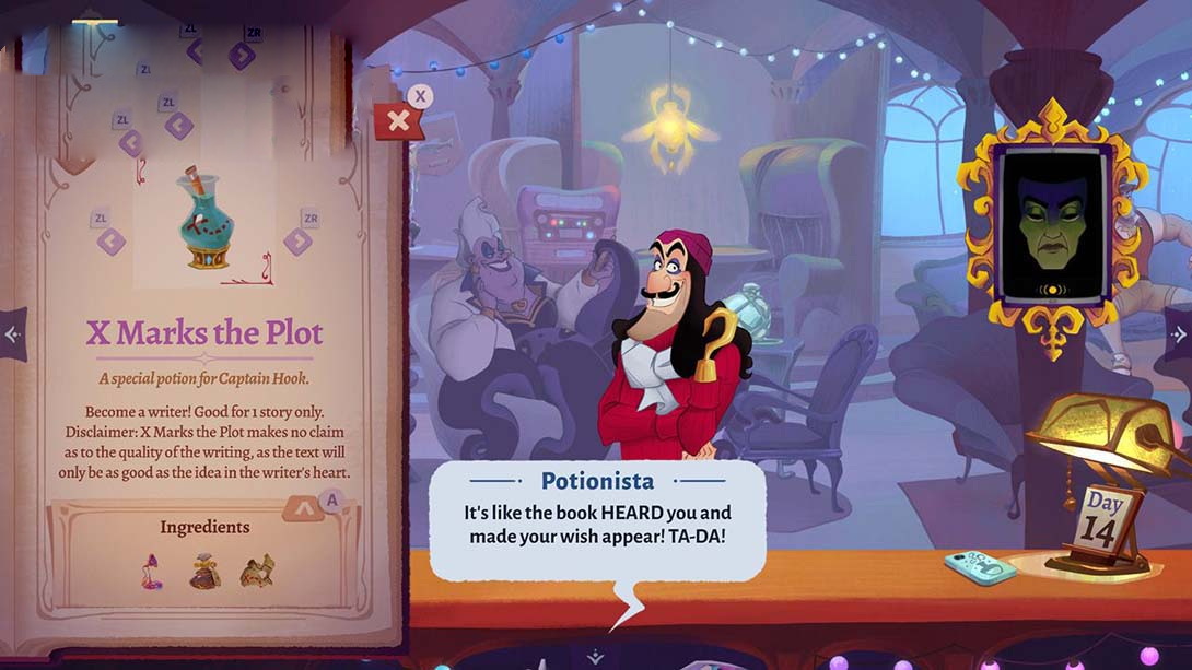 揭开他们的动机。你的选择会影响他们的野心——加斯顿能否在高尔夫球友面前出风头?胡克能否在社区剧院抢尽风头?玛琳菲森能否称霸社交媒体?乌苏拉能否成为真人秀明星?通过你的魔药创作来揭示并影响反派们的故事。