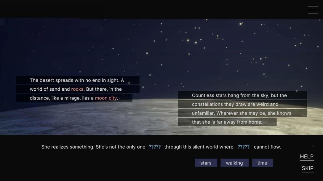 《Moonless Moon》是一款基于文本的冒险游戏,跟随一个女孩穿越各种不同的世界。