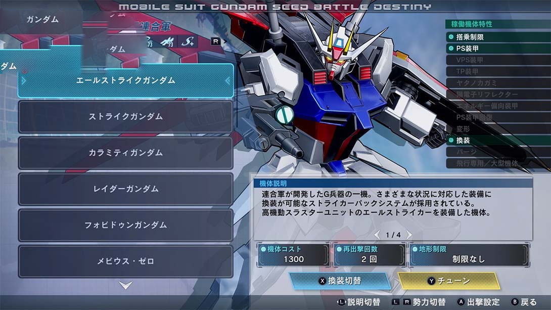 所有机动战士均采用高分辨率模型纹理重新设计。解锁更多来自《机动战士高达 SEED》系列的机动战士和任务,并在《机动战士高达 SEED》宇宙的更多支线故事中展开战斗。