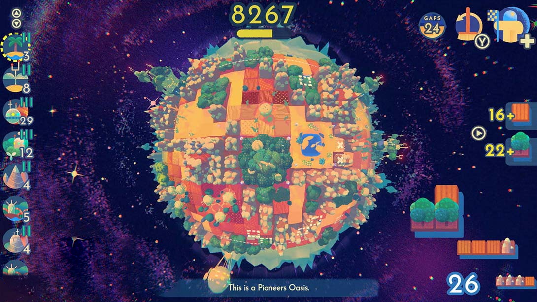 在不同大小的星球上制作栖息地,策略性的贴图位置可以为你赢得奖励和可解锁的物品,比如贴图皮肤和自定义选项。根据你的任务和游戏进程,塑造一个由特定数量的田地组成的森林或构建一个像绿洲这样的独特功能会给你带来不同的好处。