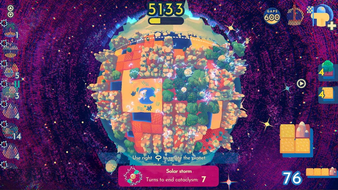 风景会对你的选择做出反应。将一些杂乱的树木变成郁郁葱葱的森林,并通过放置瓷砖来满足任务和激活能量来创建独特的生物群落。三种不同大小的行星,没有终局意味着你可以在行星之间移动,并根据自己的意愿建造和操纵生物群落。