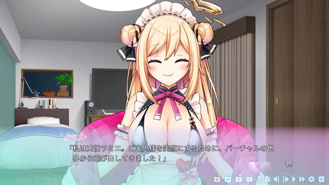 画面中出现的Vtuber女孩是女仆!?想要给主人公打气的Vtuber女仆,和让人莞尔,又有点色情的心跳的同居恋爱冒险★story学生时代偶然看到了刚出道的女仆Vtuber“天使拉米耶”的视频,这就是一切的开始。主人公为每天的工作所累,对生活变得消极。唯一能治愈的,就是看“天使拉米耶”的送信。起初只是插画的她,随着技术的进步,动作也变得流畅起来。和各种各样的人交流,隔着屏幕看着他们成长的样子,就觉得自己被鼓舞了。有一天,不知为何,住在虚拟世界的“天使拉米耶”越过画面出现在主人公眼前……——和给予精神的喜欢照顾的女仆Vtuber一起度过,愉快而又色情的共同生活拉开帷幕!——