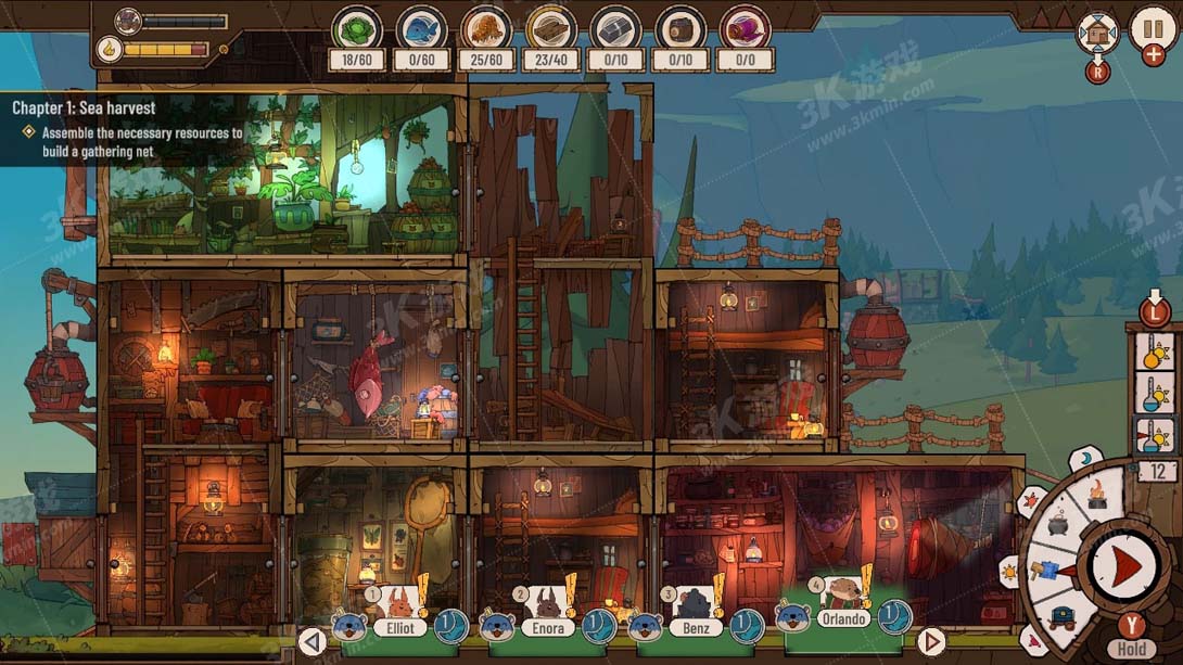 通过扩建灯塔村落(含陆地、水下及云端区域)抵御洪水,每接纳一名难民会触发独特建筑变化。