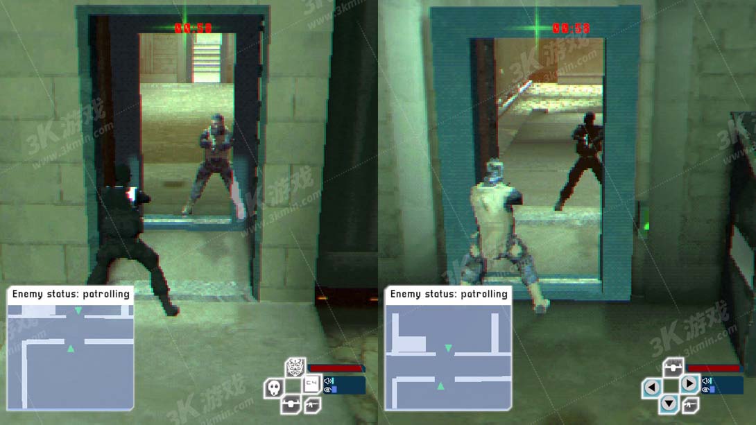 采用上帝视角为主、第一人称辅助的操作模式,强调非致命潜入(如击晕、审讯)获取情报,随机生成的关卡布局与敌人配置提升重复可玩性。