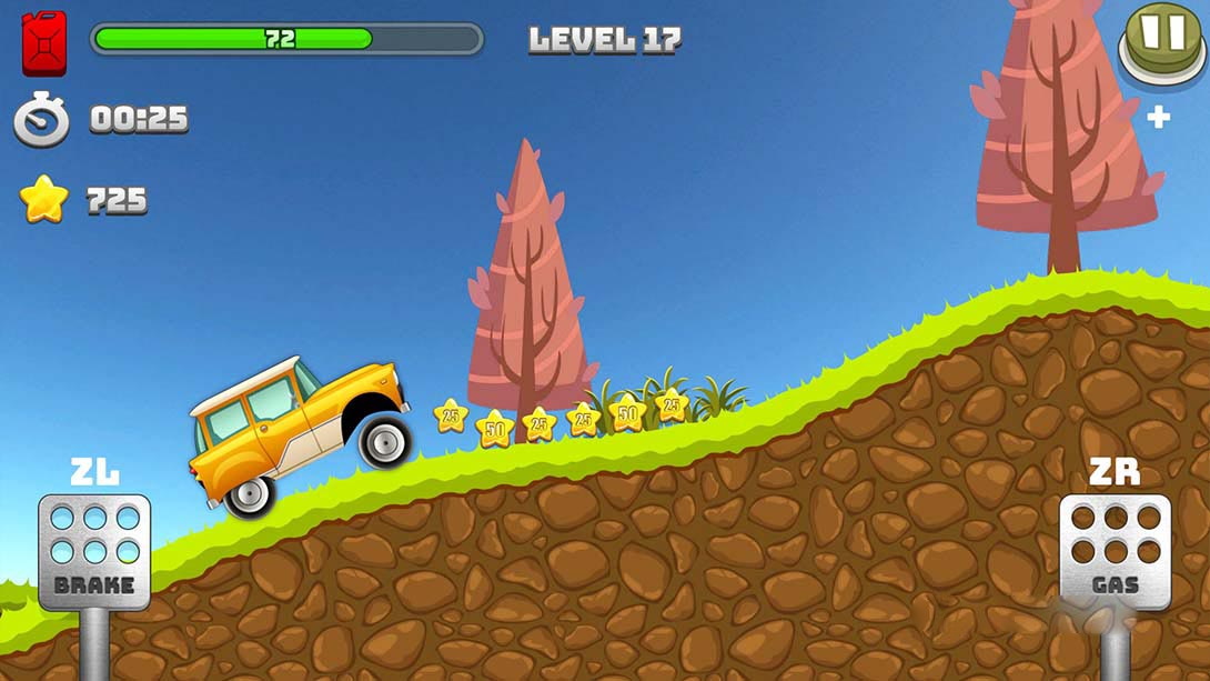 你的目标是在尽可能短的时间内到达山路的终点。听起来简单吗?无论如何!你的燃料不是无限的,山路是无情的。收集罐子来补充你的燃料供应并继续比赛。