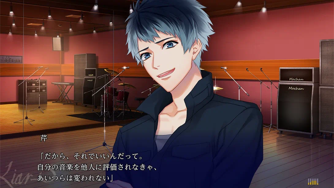 主线围绕乐队成员香椎玲音(CV.江口拓也)、百瀬つむぎ(CV.木村良平)、月野原久遠(CV.鳥海浩輔)、香椎亜貴(CV.広瀬裕也)展开,剧情包含“甘く激しく”(甜蜜而激烈)的情感冲突。