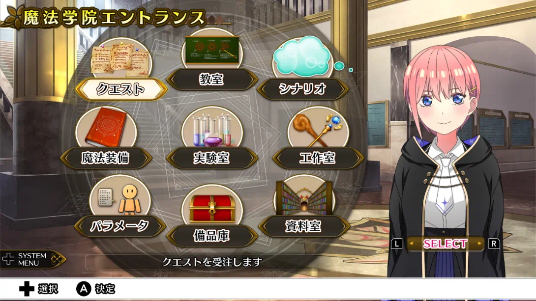 《五等分的新娘 ~幻想与深渊与魔法学院~》是一款融合了恋爱养成与地下城冒险元素的游戏。玩家将扮演主角,在魔法学院中与五姐妹展开一段充满挑战与甜蜜的故事。