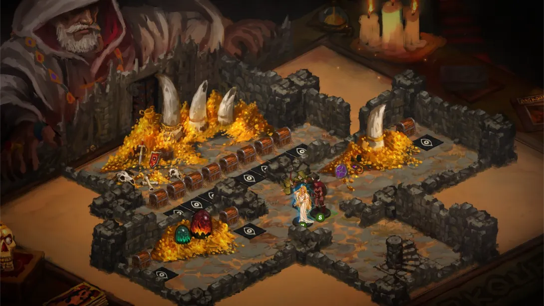 《Dark Quest 4》是一款基于回合制策略的地牢爬行游戏,灵感源自经典的英雄任务棋盘游戏。玩家需组建英雄队伍,在充满陷阱与魔法的多层地下城中展开冒险,对抗黑暗巫师古拉克的军团。