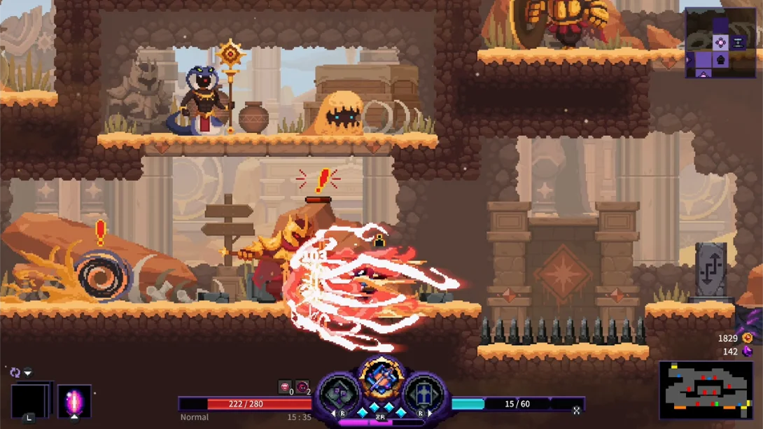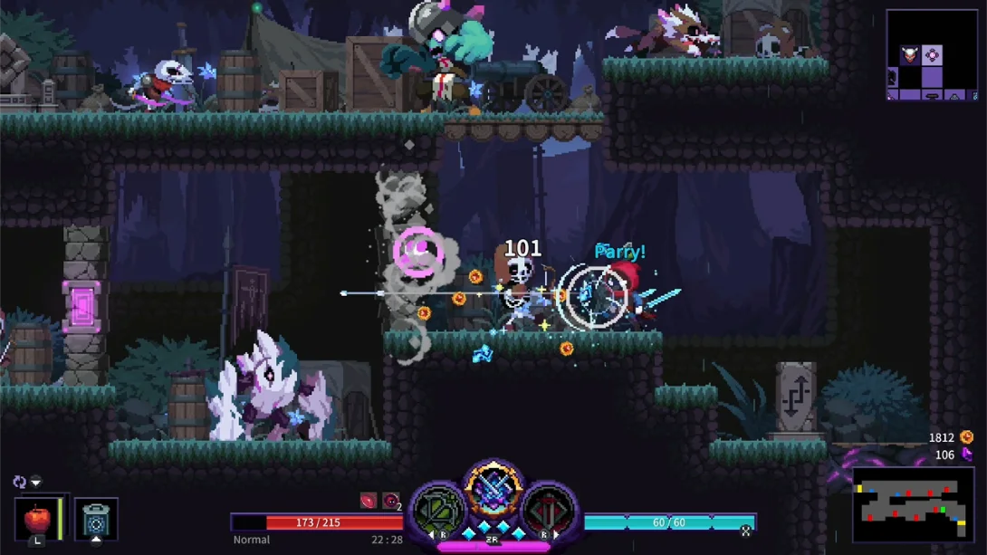 游戏难度较高,尤其第三关后Boss血量厚、技能复杂且有多阶段变化,对操作熟练度要求极高。它融合了《死亡细胞》的武器强化与《小骨》的图腾系统,但难度设计更硬核,普通通关只是开始,后续还有噩梦模式等挑战。