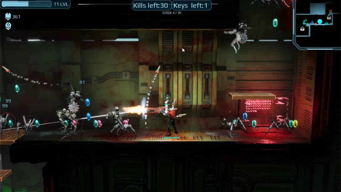 《Adrenaline Rampage》(暂译:肾上腺素狂暴)是一款融合roguelite元素的平台动作游戏,设定在黑暗科幻世界观中,玩家需操控士兵对抗机械僵尸军团。以下是核心信息整理:
