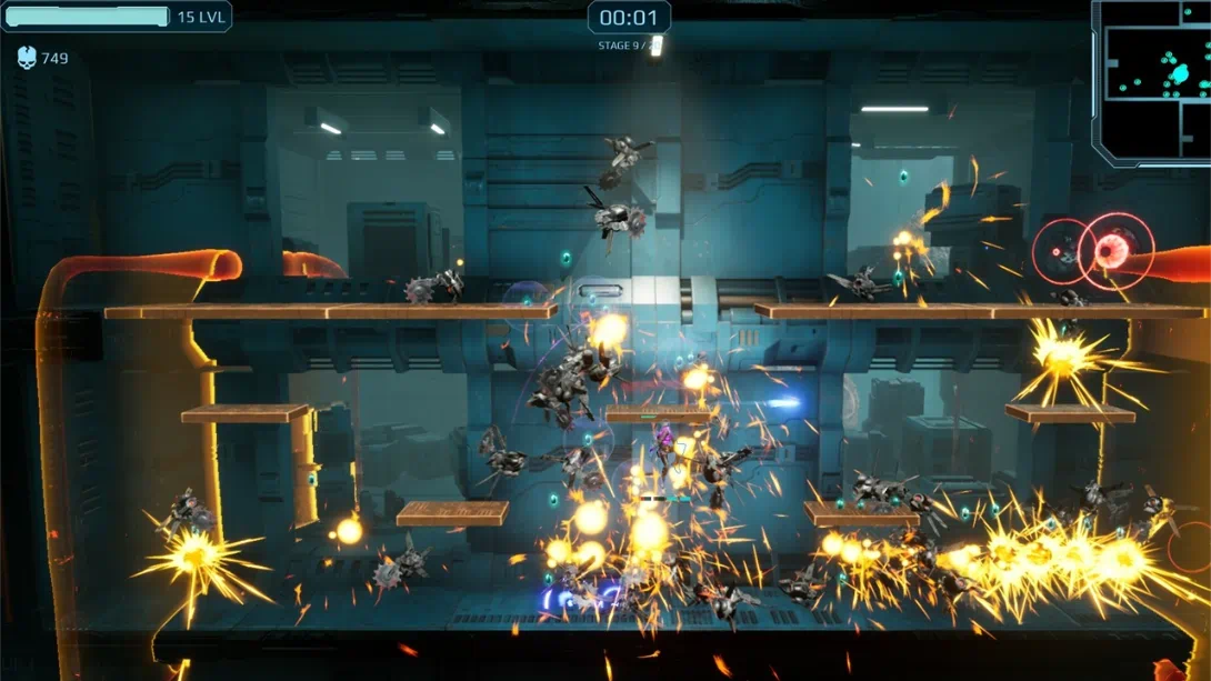 快节奏战斗:强调冲刺移动与连击机制,需在太空城市场景中灵活闪避敌人攻击。