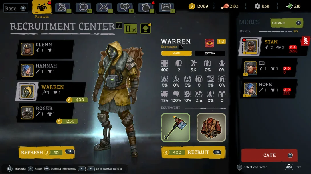 自动射击与RPG元素:玩家需在随机生成的地图中战斗,升级营地并培养雇佣兵。