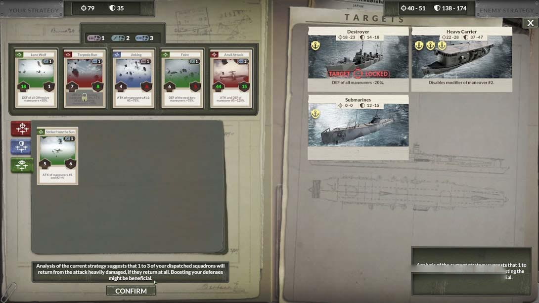 利用侦察任务中收集的情报,为飞行员和飞机的大型行动做好准备。目标是敌人的陆地基地,甚至他们的整个舰队。在选择攻击方向和确定目标和机动顺序之前,要先识别对手。