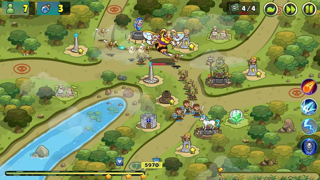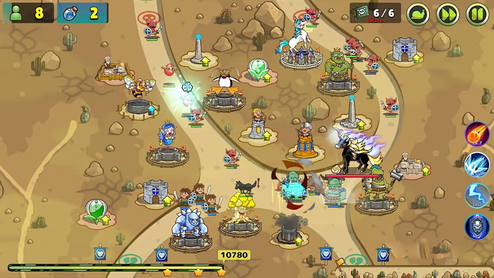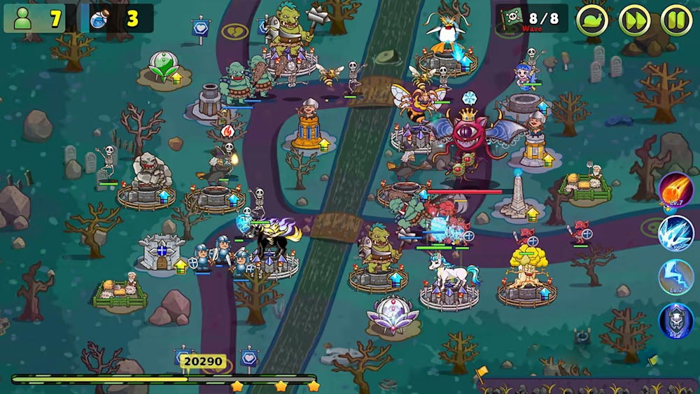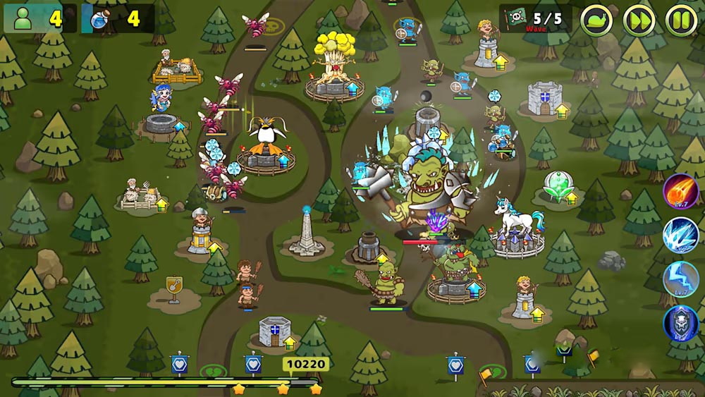 这是一款塔防游戏,玩家通过生产人口和魔法来建造防御塔。