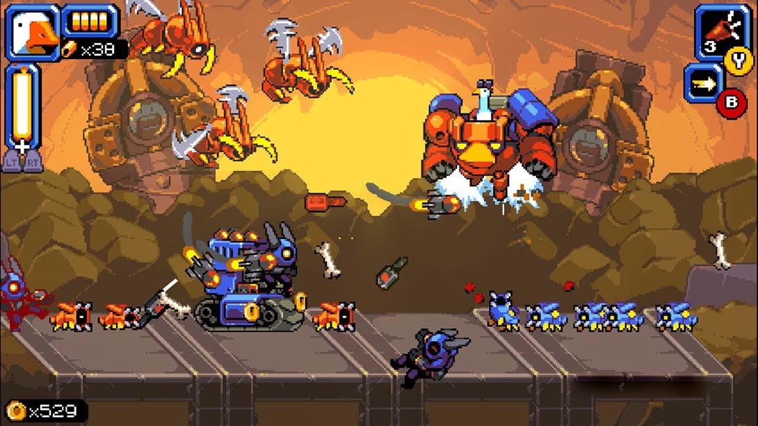 switch《暴走大鹅 Mighty Goose》是一款奖金猎鹅的横版射击动作游戏,超细腻的像素风格,爽快战斗模式,多重关卡挑战竞技赛,经典街机像素风格,多种战斗场面,总之,运用好角色的技能和装备,就能很好的升级和通关了。