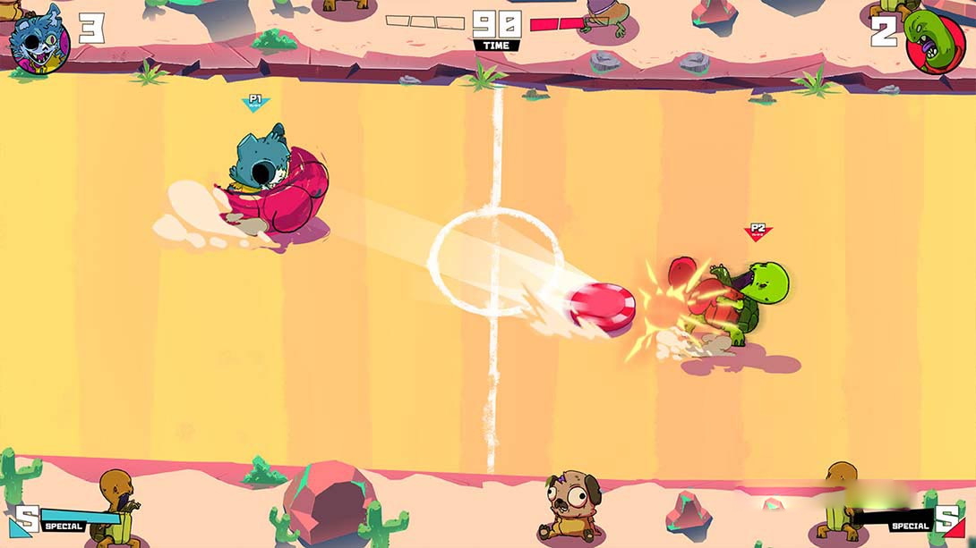 的飞盘,克服球场障碍并取得壮观的进球,击败任何敢于面对你的对手玩街机模式,并在全岛不同的竞技场面对空气曲棍球不死大师。