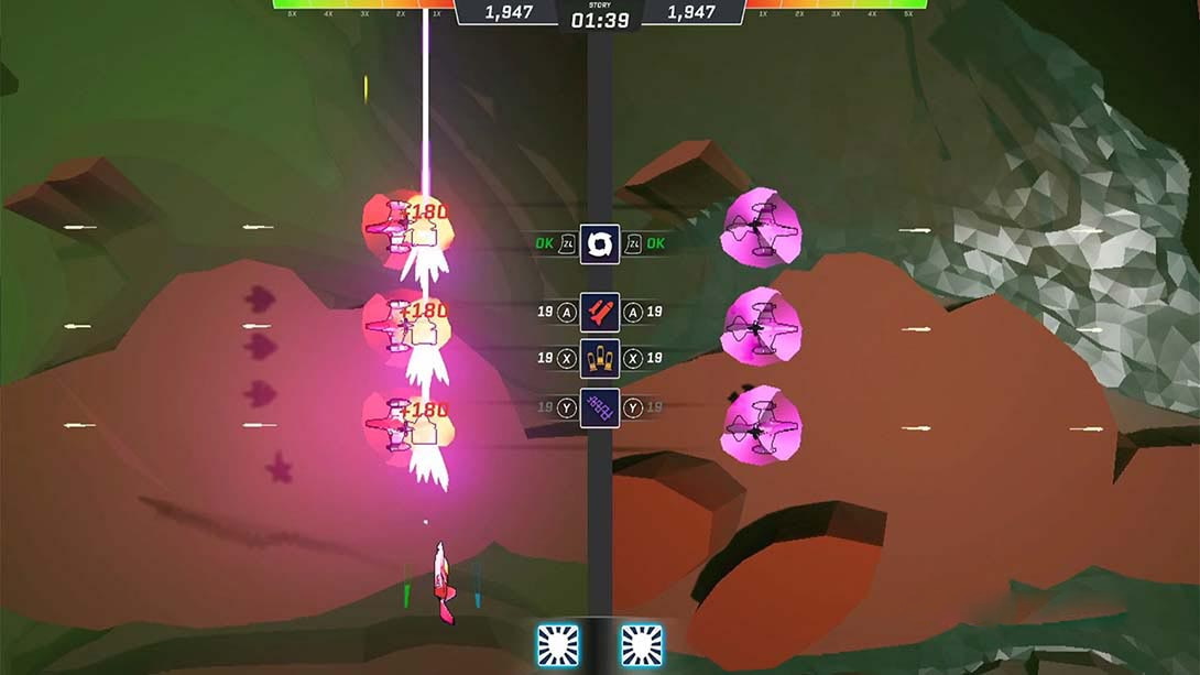 像 Shmup 一样玩,感觉像死斗!进行短暂而激烈的比赛,翻转你的船,传送到敌人的车道,窃取他们的战利品或只是为了积分!在 PVP/分屏中拥有你的对手!