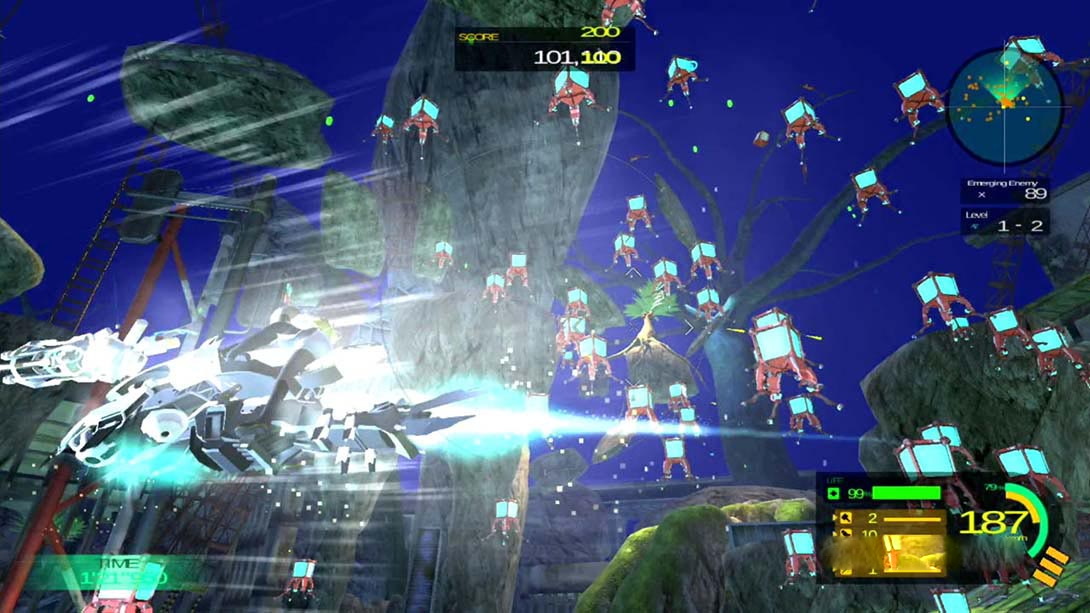 玩家将在地面、天空和各种领域飞行,并使用4种武器进行战斗。我们的目标是让玩家在游戏中同时击败所有敌人,并感受到在空中飞行的乐趣。