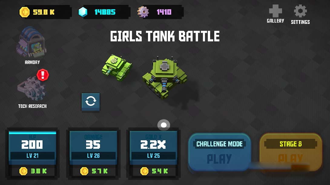・在挑战模式获得商品和升级自己的坦克在技术研究模式。
